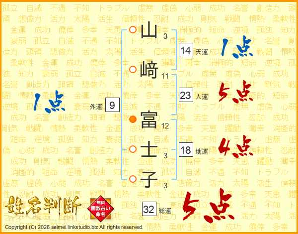 山(3画)﨑(11画) 富(12画)士(3画)子(3画)