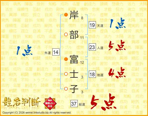 岸部富士子さんの総運は37画の5点!