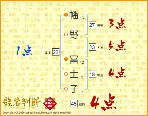 幡野富士子さんの総運は45画の4点!