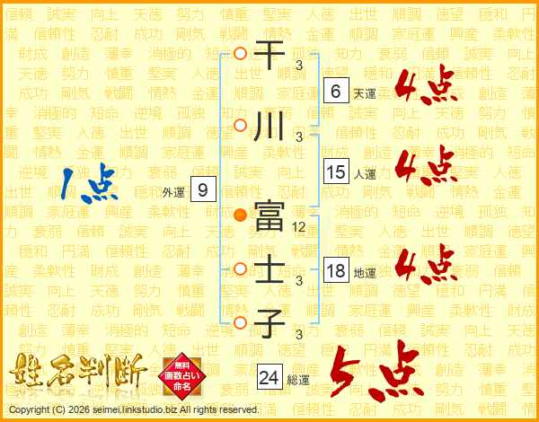 干川富士子さんの人運は15画の4点!
