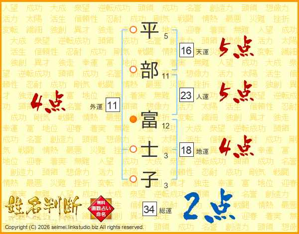 平(5画)部(11画) 富(12画)士(3画)子(3画)