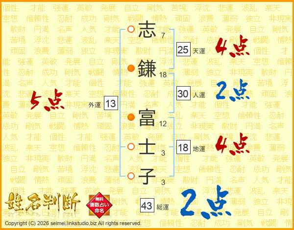 志(7画)鎌(18画) 富(12画)士(3画)子(3画)