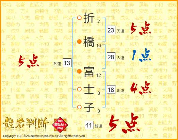 折橋富士子さんの総運は41画の5点!