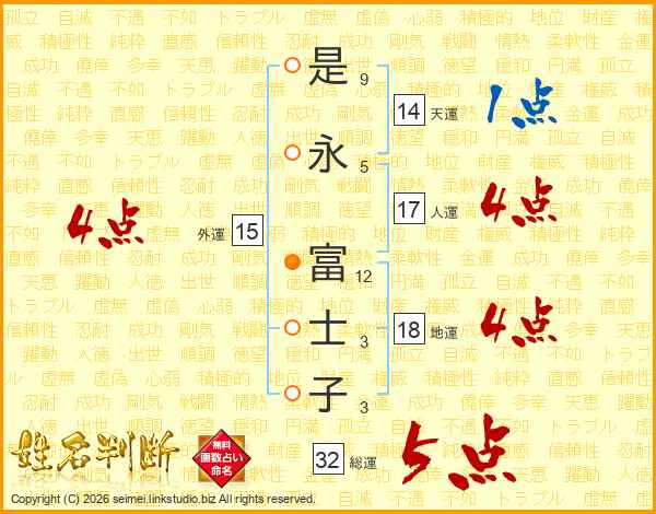 是永富士子さんの外運は15画の4点!