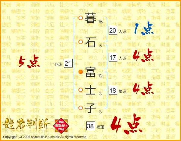 暮(15画)石(5画) 富(12画)士(3画)子(3画)