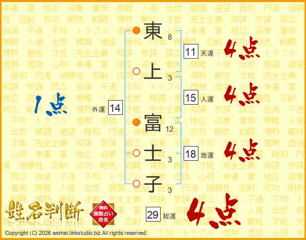 東(8画)上(3画) 富(12画)士(3画)子(3画)