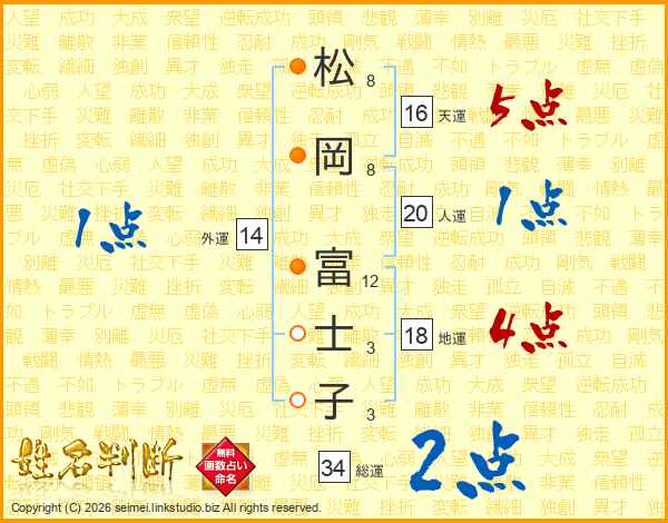 松岡富士子さんの人運は20画の1点