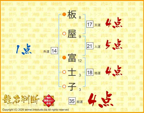 板屋富士子さんの天運は17画の4点!