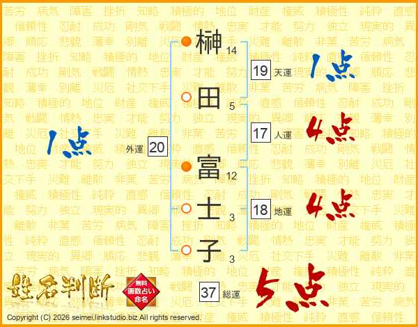 榊(14画)田(5画) 富(12画)士(3画)子(3画)