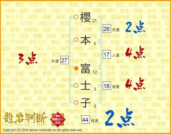 櫻本富士子さんの天運は26画の2点!