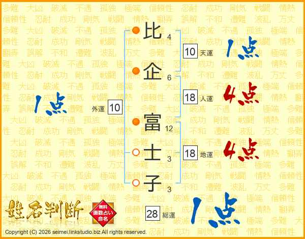 比企富士子さんの総運は28画の1点!