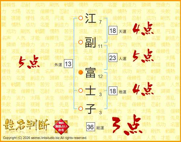 江(7画)副(11画) 富(12画)士(3画)子(3画)