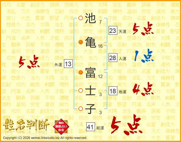 池亀富士子さんの天運は23画の5点!