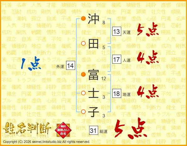 沖田富士子さんの総運は31画の5点!