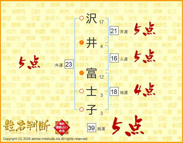 沢井富士子さんの総運は39画の5点!