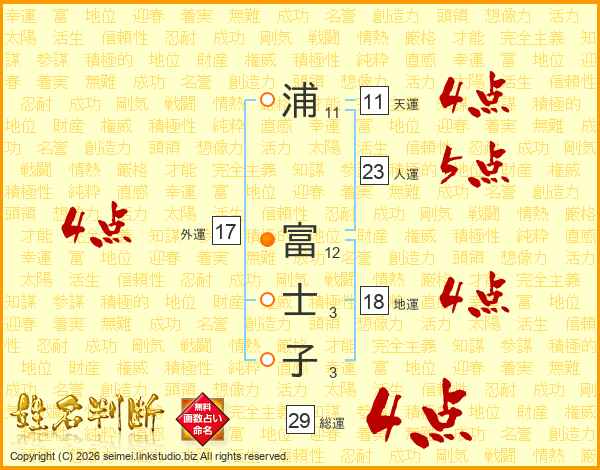 浦富士子さんの総運は29画の4点!