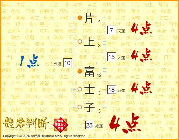 片(4画)上(3画) 富(12画)士(3画)子(3画)