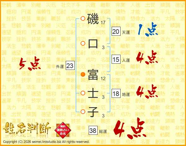 磯(17画)口(3画) 富(12画)士(3画)子(3画)