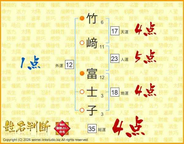 竹﨑富士子さんの総運は35画の4点!