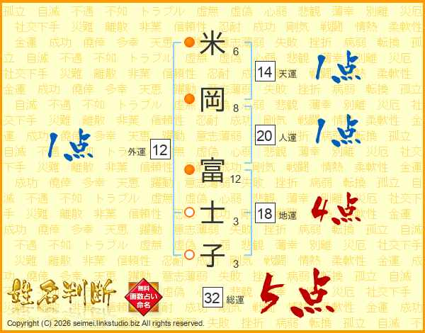 米岡富士子さんの総運は32画の5点!