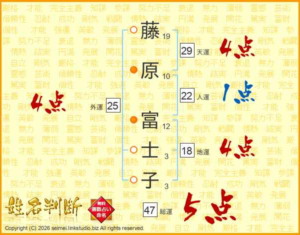 藤原富士子さんの総運は47画の5点!