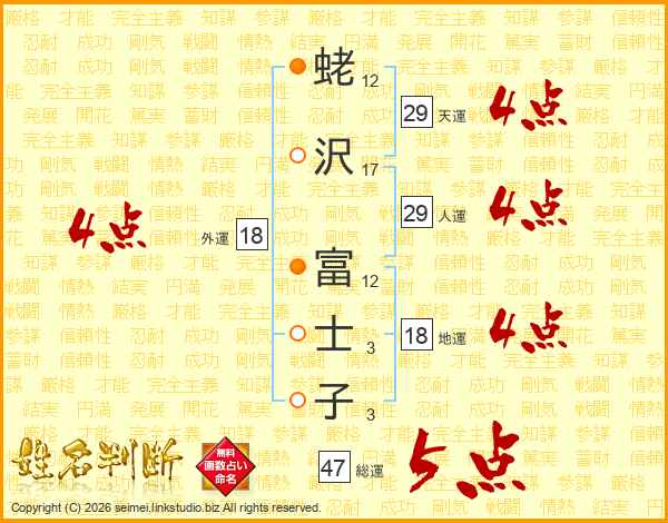 蛯沢富士子さんの総運は47画の5点!