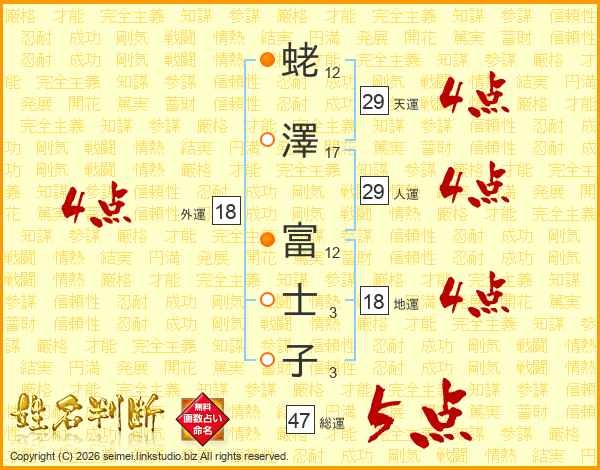 蛯(12画)澤(17画) 富(12画)士(3画)子(3画)