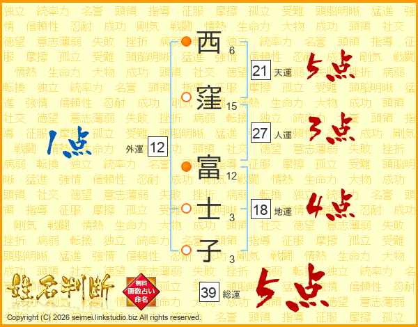 西窪富士子さんの総運は39画の5点!