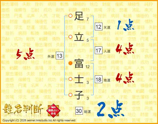 足(7画)立(5画) 富(12画)士(3画)子(3画)