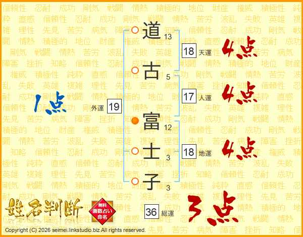 道(13画)古(5画) 富(12画)士(3画)子(3画)