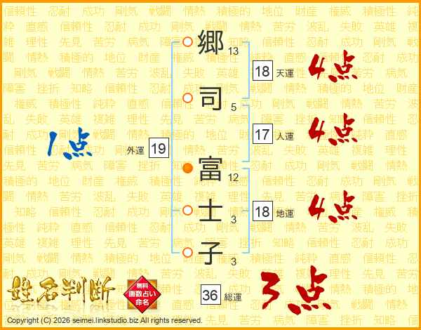 郷(13画)司(5画) 富(12画)士(3画)子(3画)