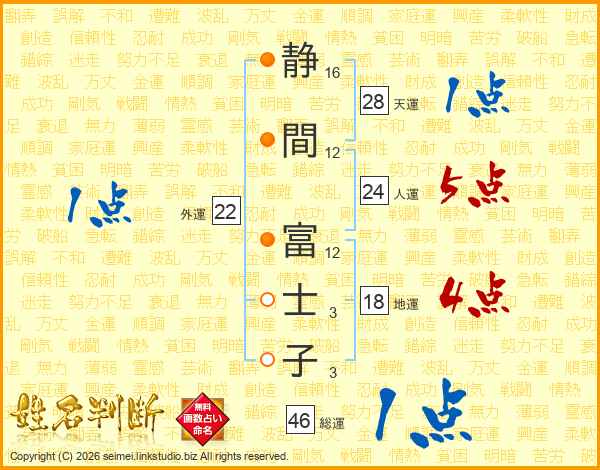 静間富士子さんの総運は46画の1点!