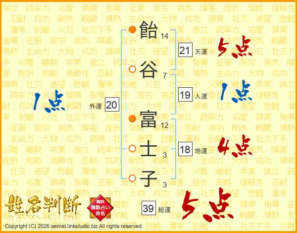 飴谷富士子さんの総運は39画の5点!