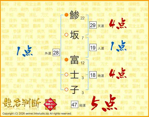鯵坂富士子さんの総運は47画の5点!