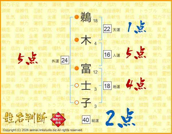 鵜木富士子さんの外運は24画の5点!