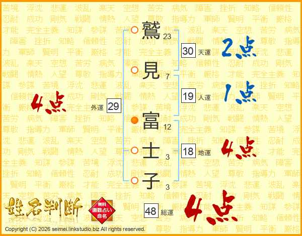 鷲見富士子さんの総運は48画の4点!