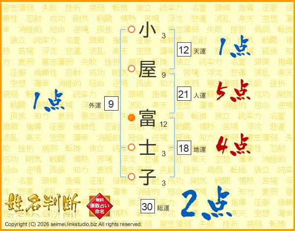 小屋富士子さんの総運は30画の2点!