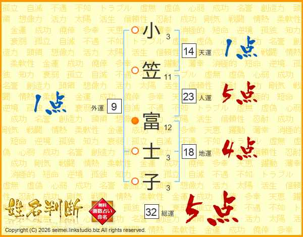 小笠富士子さんの総運は32画の5点!