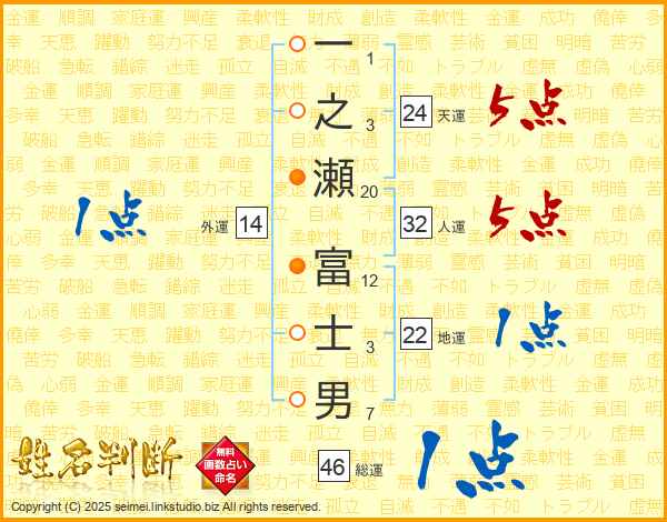 一(1画)之(3画)瀬(20画) 富(12画)士(3画)男(7画)