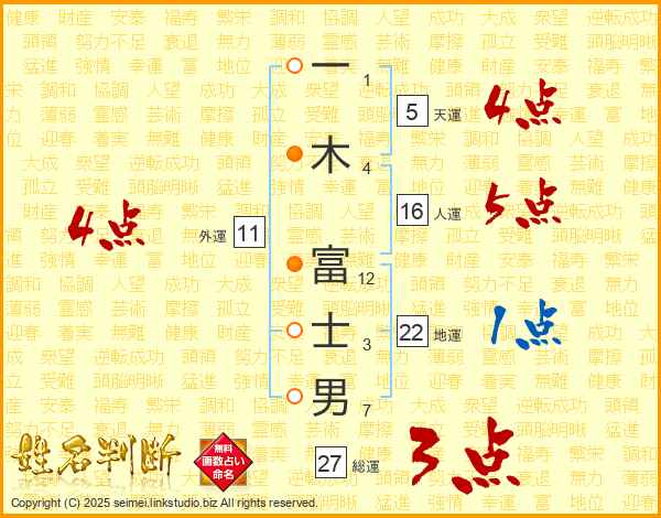 一(1画)木(4画) 富(12画)士(3画)男(7画)