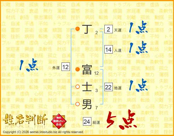 丁富士男さんの人運は14画の1点!