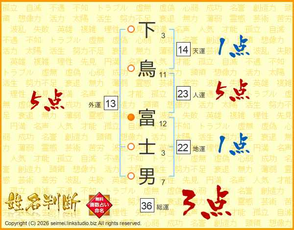 下鳥富士男さんの天運は14画の1点!