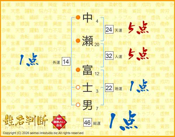 中瀬富士男さんの天運は24画の5点!