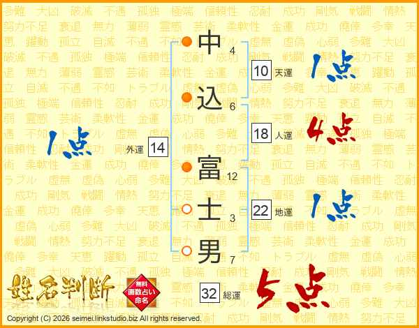 中(4画)込(6画) 富(12画)士(3画)男(7画)