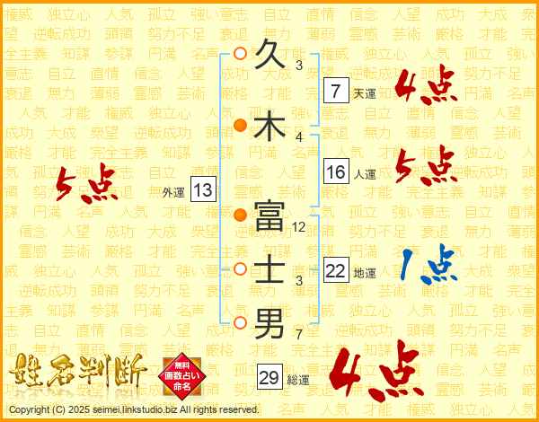 久木富士男さんの天運は7画の4点!