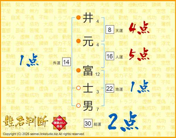 井(4画)元(4画) 富(12画)士(3画)男(7画)