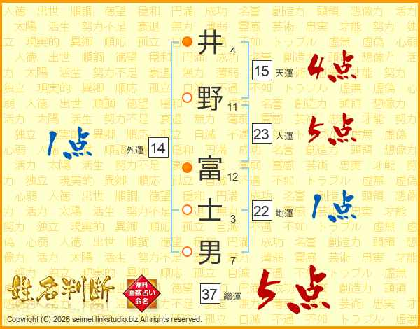 井野富士男さんの総運は37画の5点!