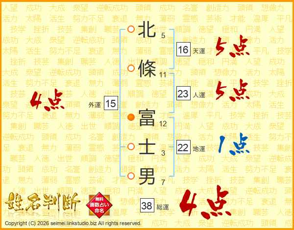 北(5画)條(11画) 富(12画)士(3画)男(7画)