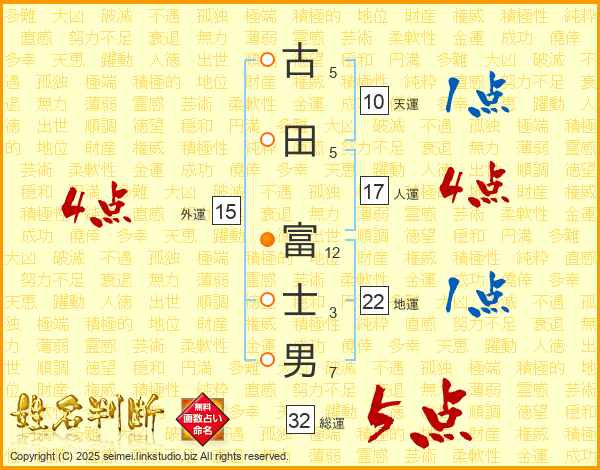 古田富士男さんの人運は17画の4点!