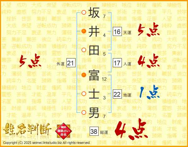 坂井田富士男さんの総運は38画の4点!